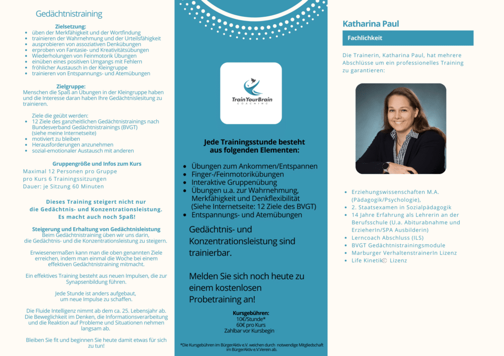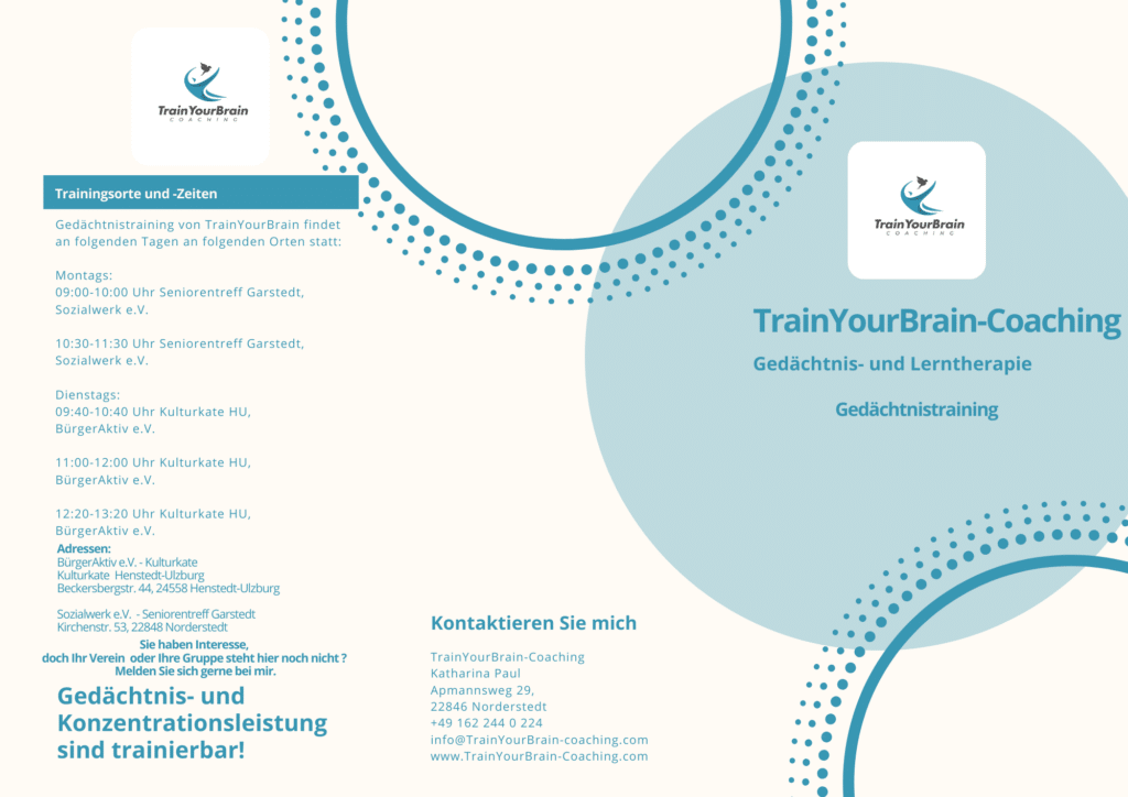 Dienstags finden unsere Gedächtnistrainingskurse in der Kulturkate in Henstedt Ulzburg statt. Diese Trainings sind eine Kooperation mit dem BürgerAktiv e.V. in HU.